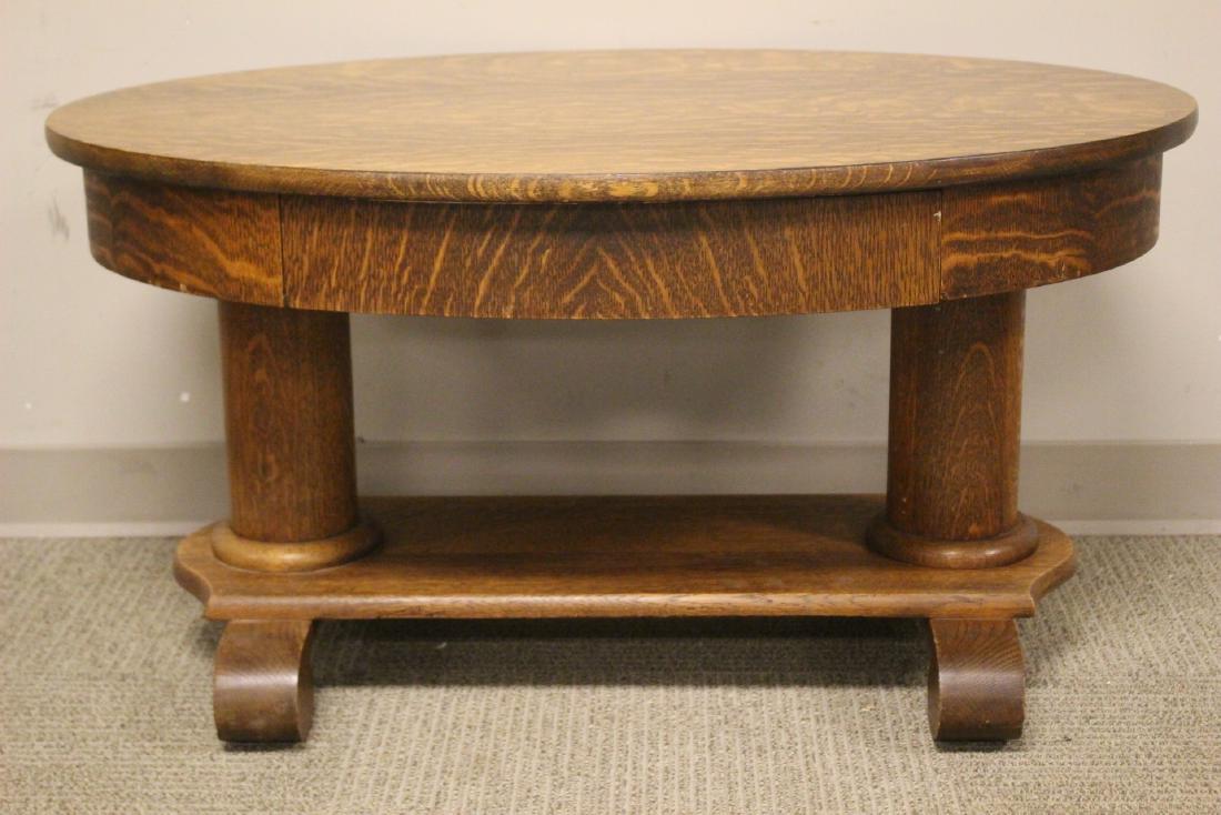 The collection's primary material is white oak, quarter sawn and cathedral sawn to emphasize the wood's beautiful grain and cerused with a hint of gold. Mission craftsman quarter sawn oak round coffee table 33 colors. Due to variations in screens and lighting, we do not require you to make a final stain selection when you order. This handsome coffee table has some of the nicest tiger oak grain. The top is solid, not veneer.